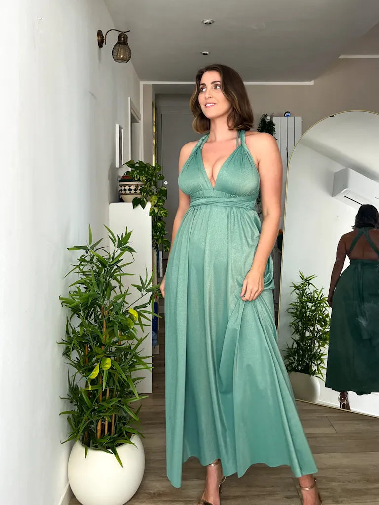 Abito OLIMPIA Multi-way - Lurex editon - Porcelain Green