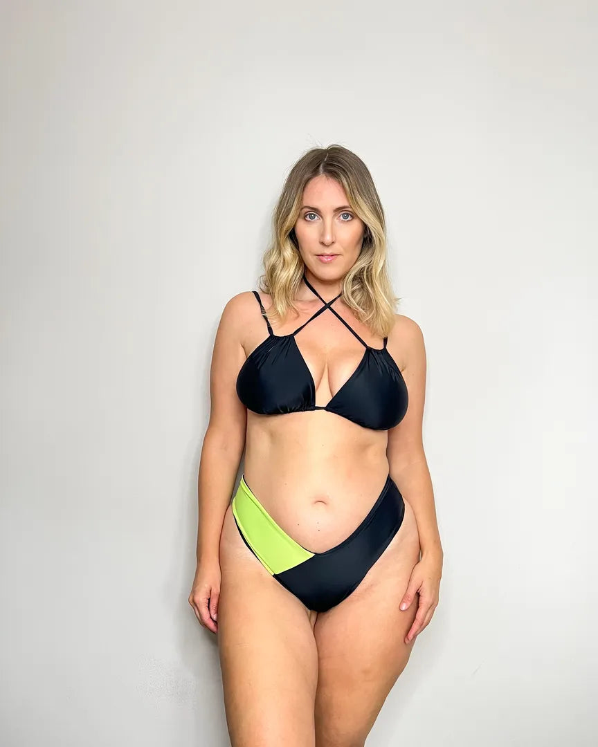 RIO è la slip brasiliana pensato per abbracciare le curve con leggerezza e carattere 💛🌊💃🌿. Reversibile e bicolore, ha una sgambatura alta che slancia, un retro a V studiato per valorizzare senza stringere, e una vita morbida che non taglia.